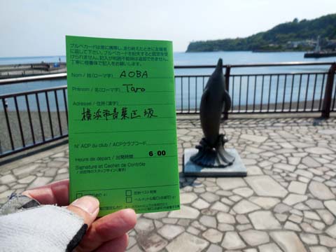 ヘアピンカーブの手前左手の公園に大きないるかの像が2つありますので、そのいずれかを背景に入れて当日お配りするブルベカードの参加者名が書いてある面を撮影し、ブルベカードに記載のあるメールアドレスに送信して下さい。また写真撮影時にはカメラやスマートフォン、携帯電話を落とさないように注意して下さい。 - PC2 あいあい岬