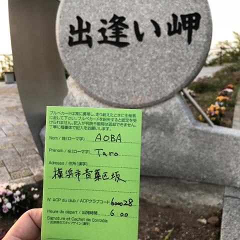 PC1と同様に景色をバックにブルベカードの参加者名が記載してある側を撮影して来て下さい。 - PC3 出逢い岬